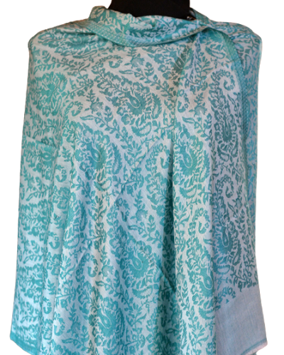 Prezentowany w odcieniu morskim, ten szal dodaje nuty świeżości i subtelności. Kolor ten doskonale komponuje się zarówno z casualowymi, jak i bardziej formalnymi stylizacjami.