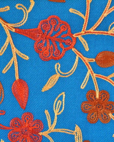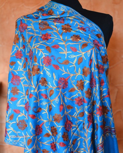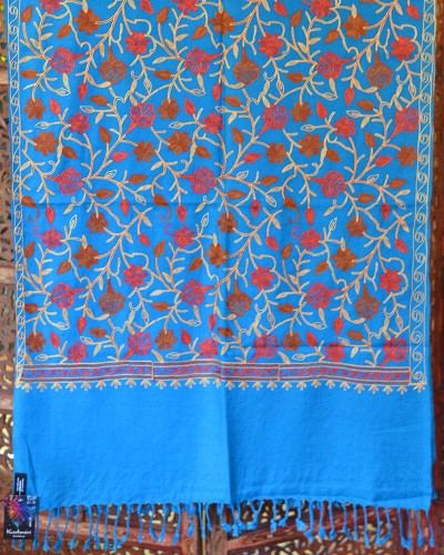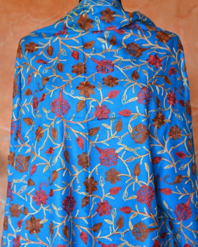 Szal z wełny kaszmirskiej wyszywany niebieski