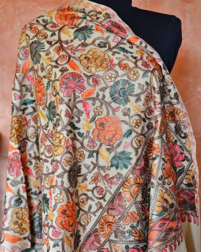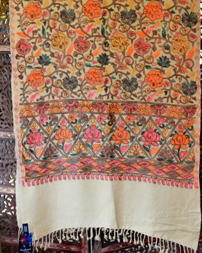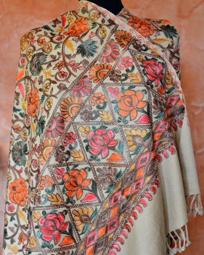 Szal z wełny kaszmirskiej wyszywany beżowy