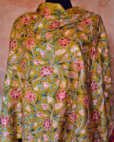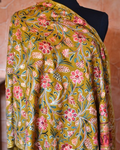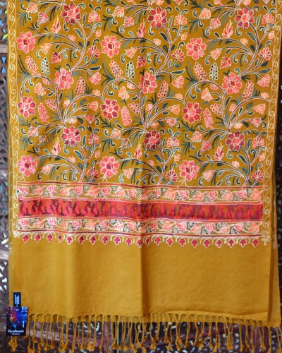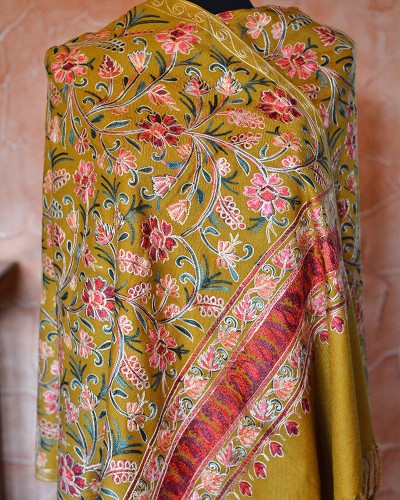 Szal z wełny kaszmirskiej wyszywany miodowy