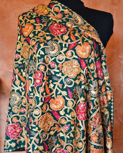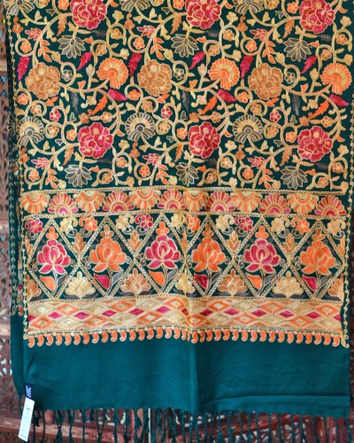 Szal wełniany czarny - wyszywany haftem kaszmirskim
