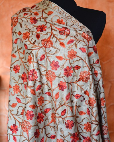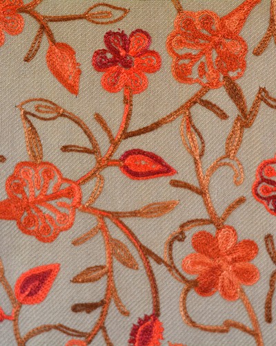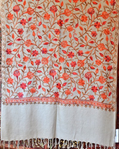 Szal z wełny kaszmirskiej wyszywany beżowy