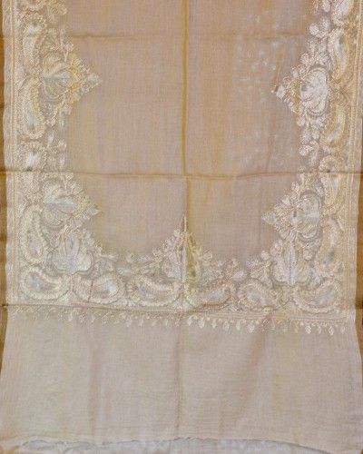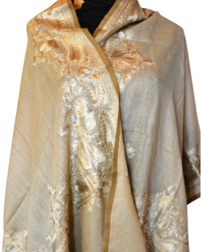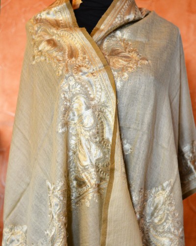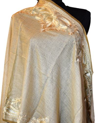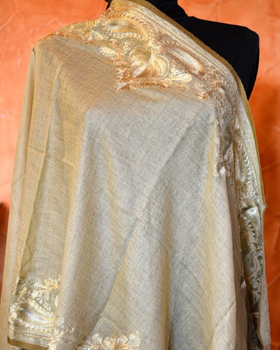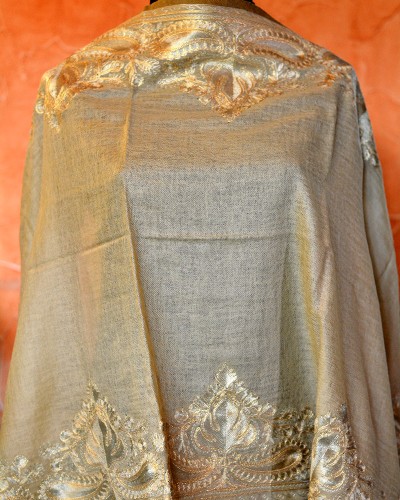 Szal z paszminy kaszmirskiej wyszywany złotą nitką