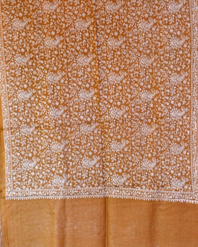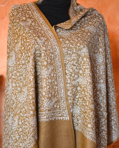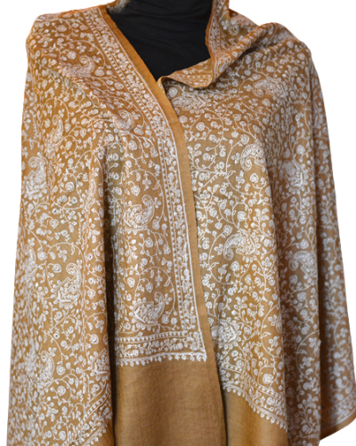 Szal z paszminy kaszmirskiej Sojni wyszywany miodowy
