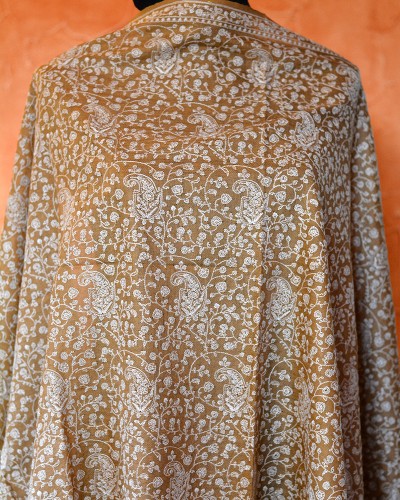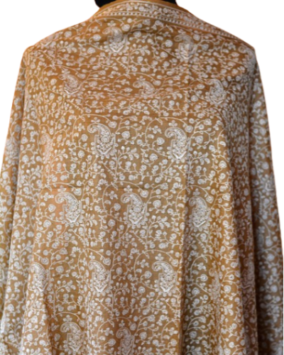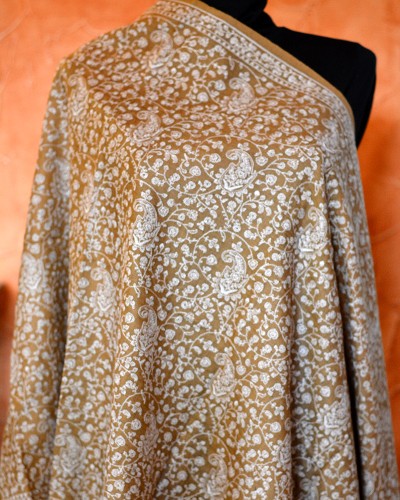 Szal kaszmirski Pashmina Sojni, wyszywany, miodowy
