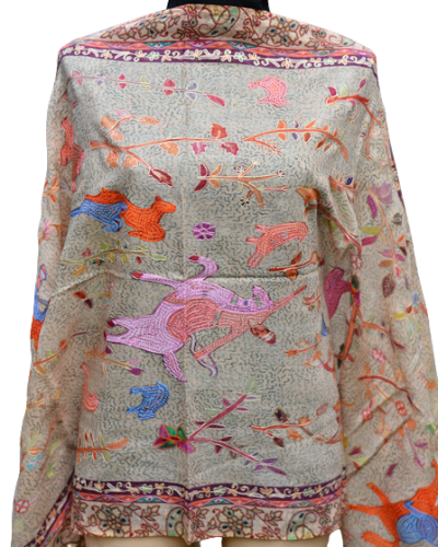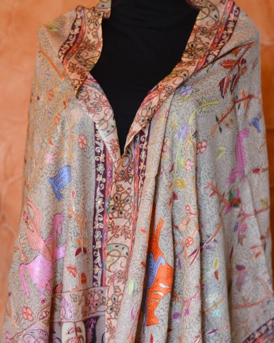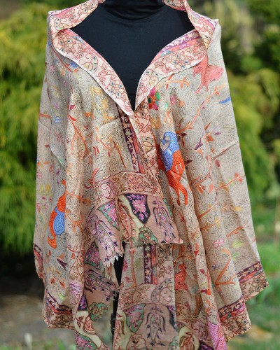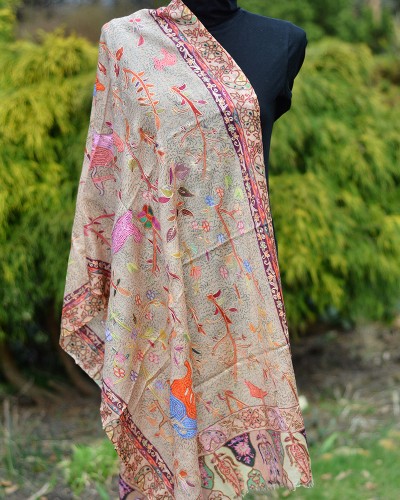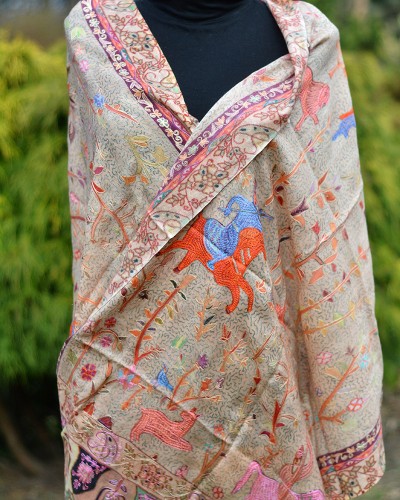 Szal z Pashminy Kalamkari ręcznie malowany i wyszywany
