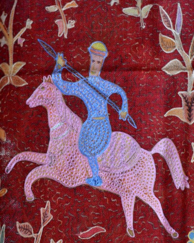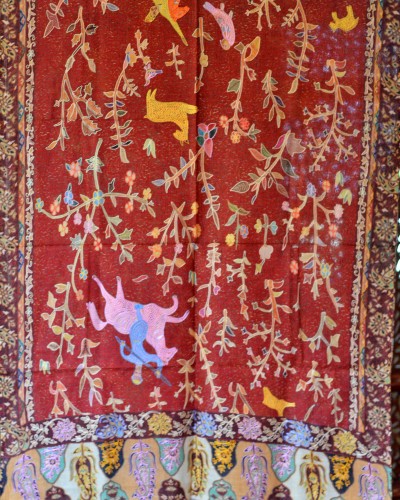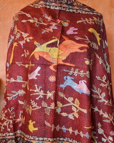 Szal z Pashminy Kalamkari ręcznie malowany i wyszywany