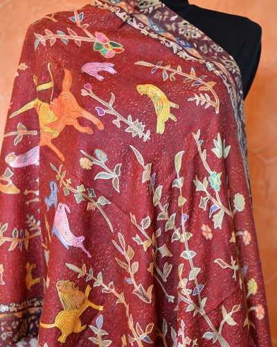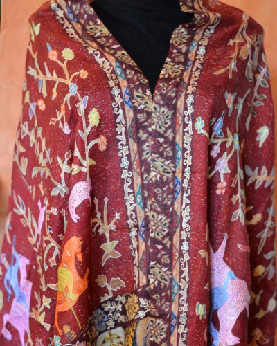Skład: Paszmina wyszywana Kolor: bordowy Materiał dominujący: Pashmina Kalamkari
