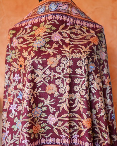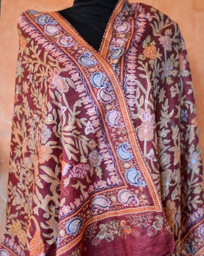 Szal z Pashminy Kalamkari ręcznie malowany i wyszywany