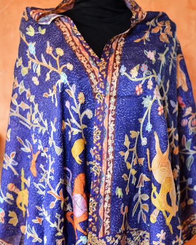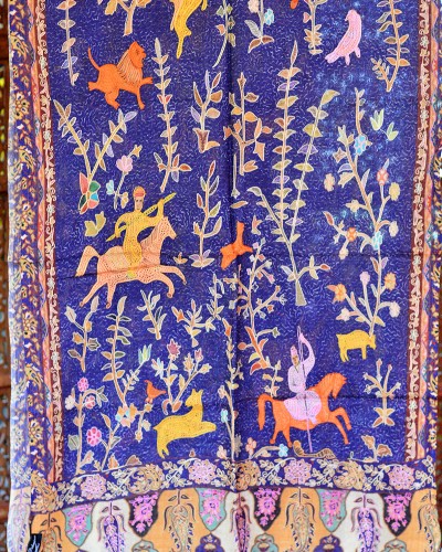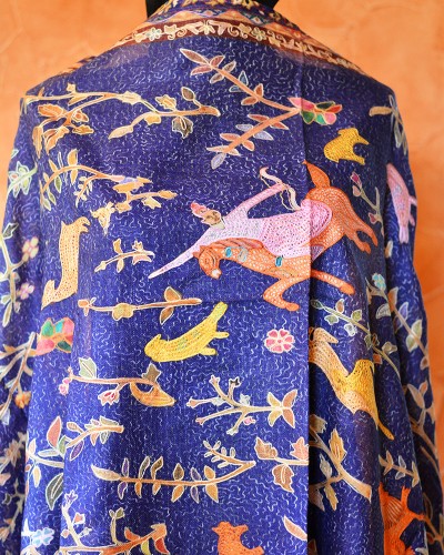 Szal z Pashminy Kalamkari - Ręcznie malowany i wyszywany