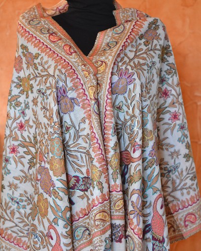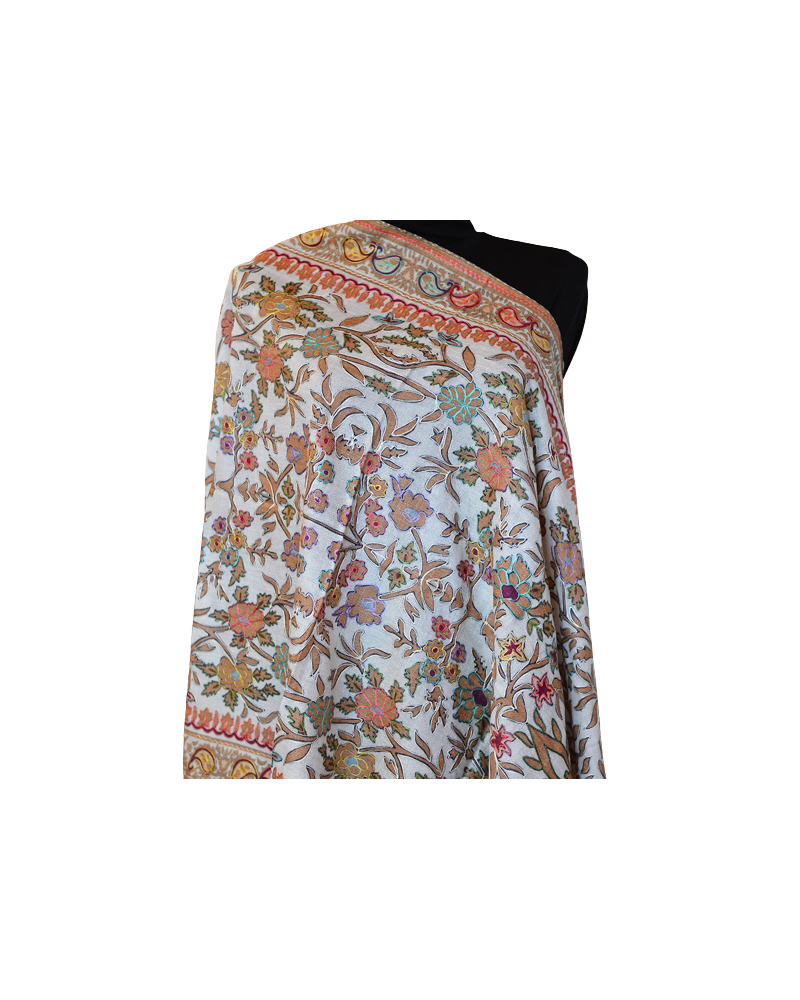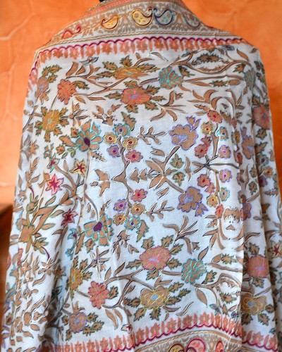 Szal z Pashminy Kalamkari ręcznie malowany i wyszywany