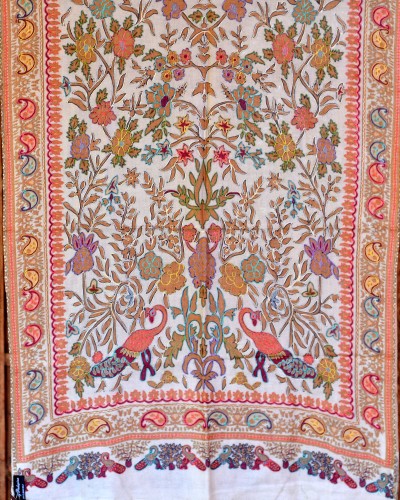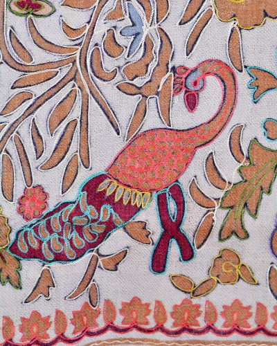 Szal z Pashminy Kalamkari - Ręcznie Malowany i Wyszywany