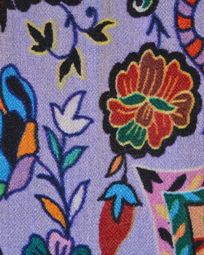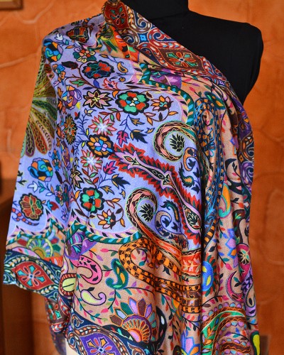 Szal Jedwabny z wełenką ze wzorem i wyszyciem Kalamkari