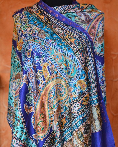 Wzór boho, dominujący na tym eleganckim i jednocześnie wyjątkowo modnym szalu, doda twojemu strojowi subtelnego piękna i unikalności. Materiał dominujący to Silkwool Kalamkari Embroidered, który sprawia, że szal jest miły w dotyku i przyjemny do noszenia.
