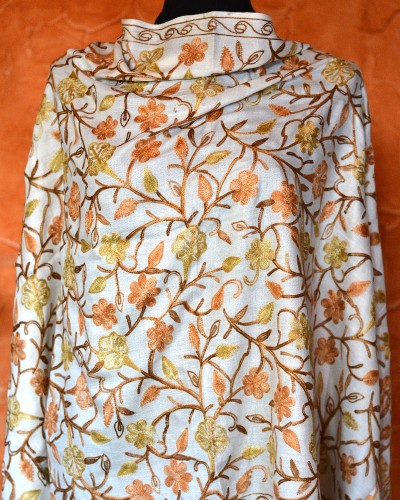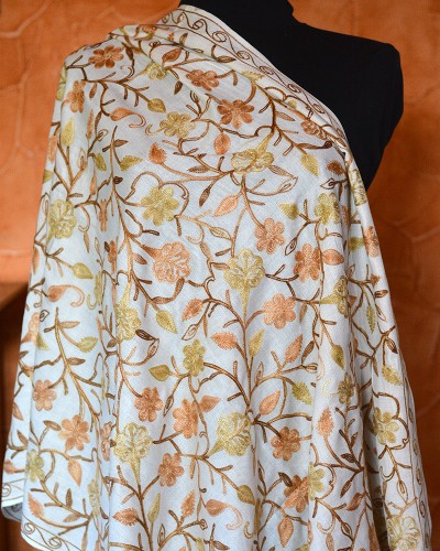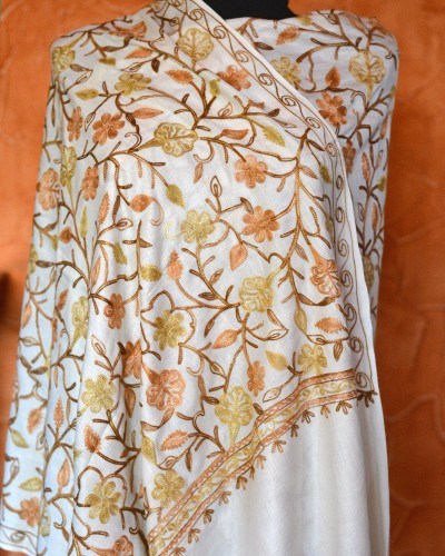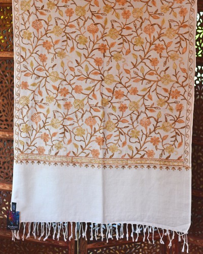 Szal z wełny kaszmirskiej wyszywany biały
